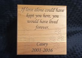 Our alder pet urns are the perfect way to remember your friend. Choose from one of our designs below, or contact us for a custom engraving.